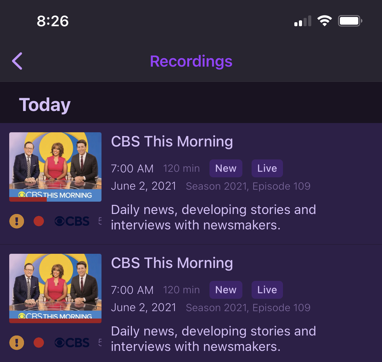 1; I can't manually set two shows of the same name to record (one series pass, the other, just record on demand). If I do this, it will stop one of them.