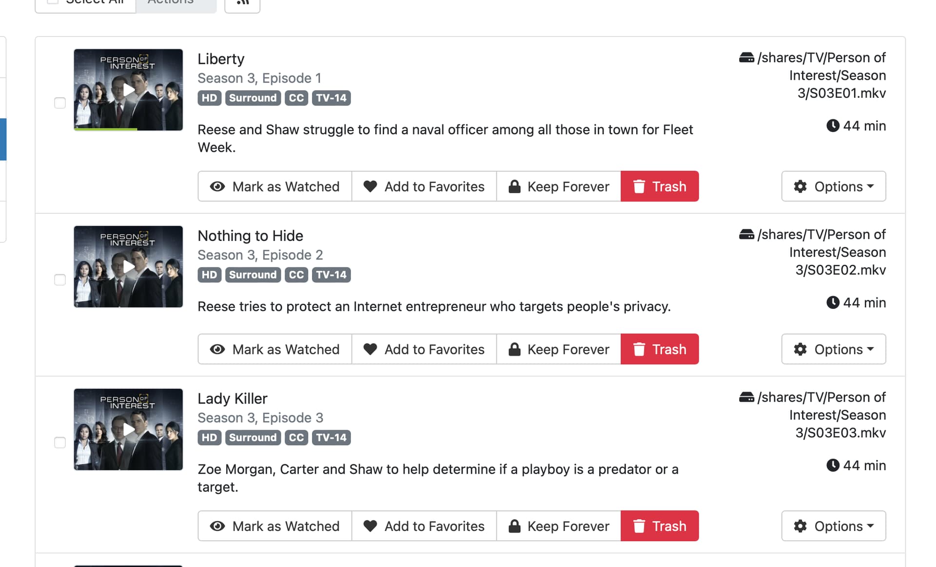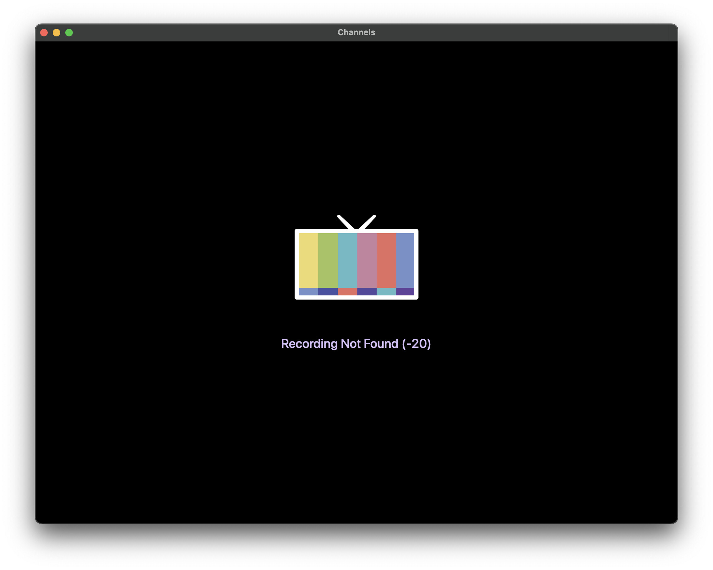 Hello, I am unable to play an imported TV show in its original format. Channels says "Recording not found (-20)"