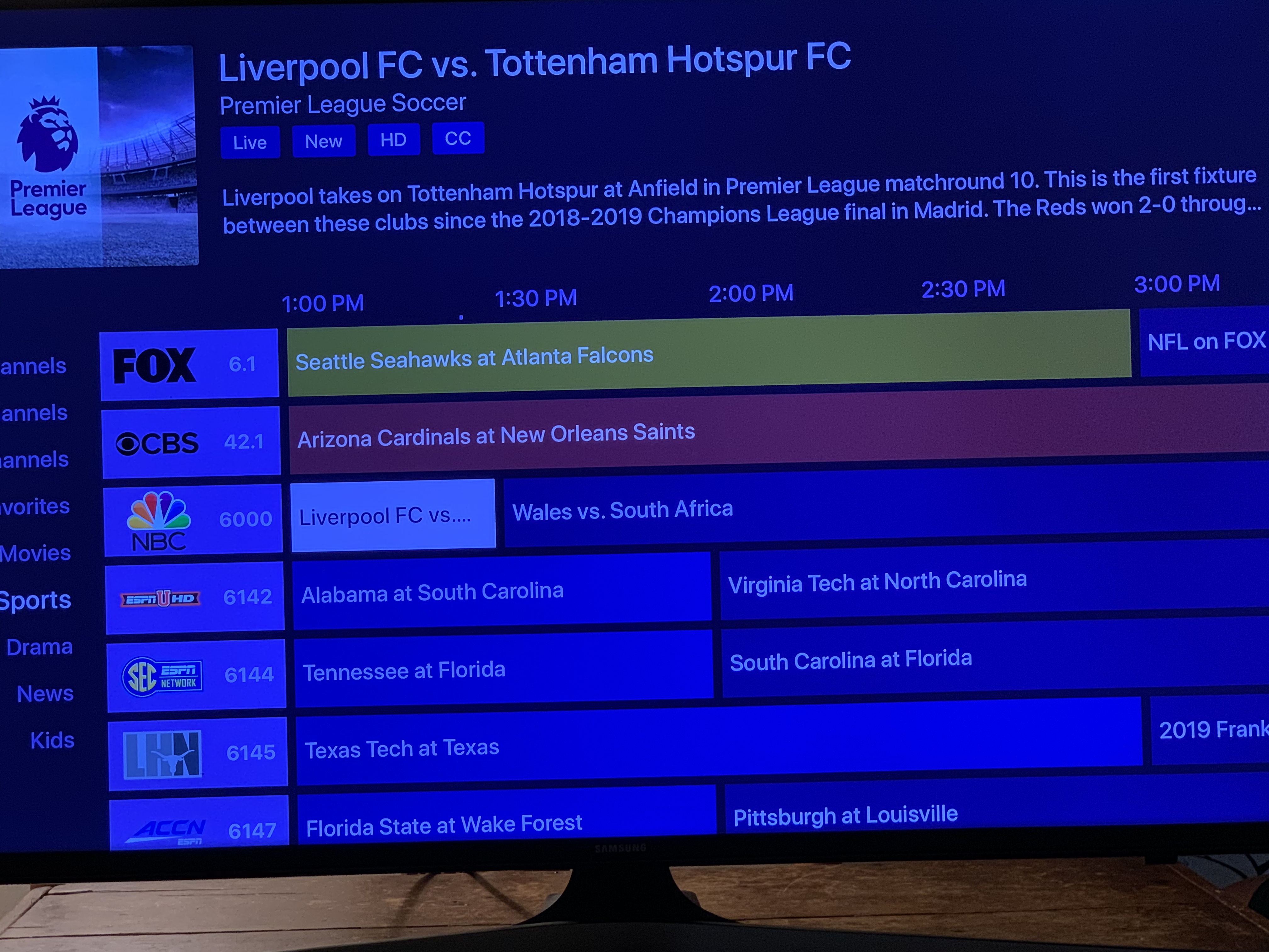 Please note from picture: At 1:00pm, there were two NFL games scheduled to be recorded. At the time of the picture, about 1:25pm, the Arizona v New Orleans game is correctly recording (shown in red) on CBS. But the Seattle v Atlanta game on Fox shows as scheduled (in yellow), but is not recording -- even though there are tuners available.