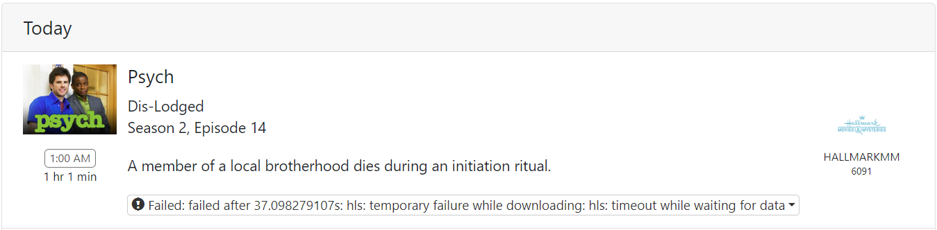 2023/03/12 01:00:00.001593 [DVR] Starting job 1678600800-269 Psych on ch=[6091]