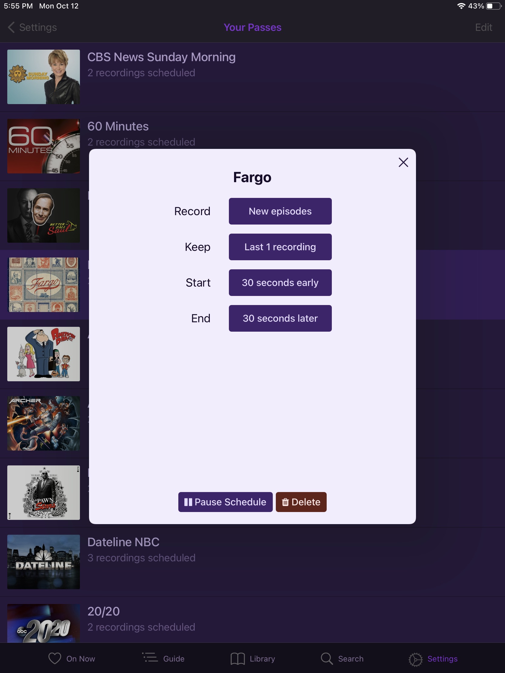 Yesterday Sunday, it deleted my recording of 60 minutes right after was done recording it. And today when I went to watch Fargo it too was deleted.