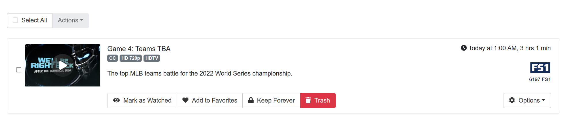 When watching the first World Series game I was disappointed that the recording ended before the game.