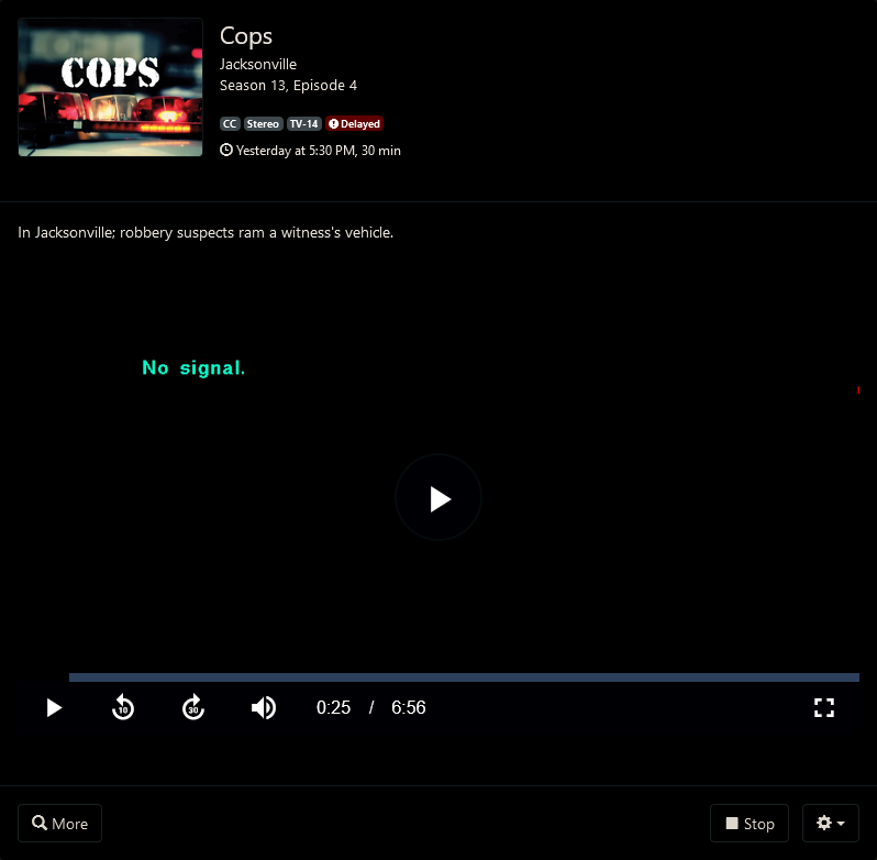 Recording and Live fails immediately with error TVE: Stream Not Available