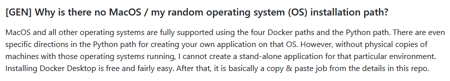 but for the average person its far too technical i'm using a mac mini and i don't see any option to install this on the mac so i assume docker is the only option