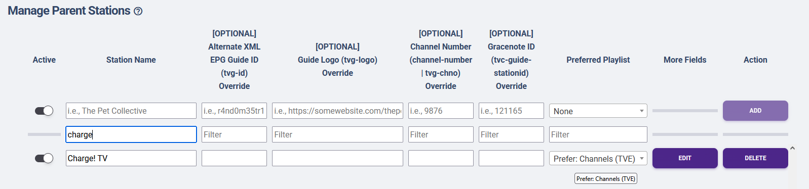 Did you enable the HDHR source in Channels? I had to disable that in order for it to use the source i desire. Also make sure the priority in the playlist settings are sorted. If you just want Charge to use the TVE feed, then you can specify that ok the parent channels settings
