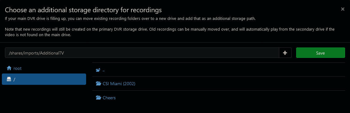After creating a new directory /shares/imports/AdditionalTV/TV