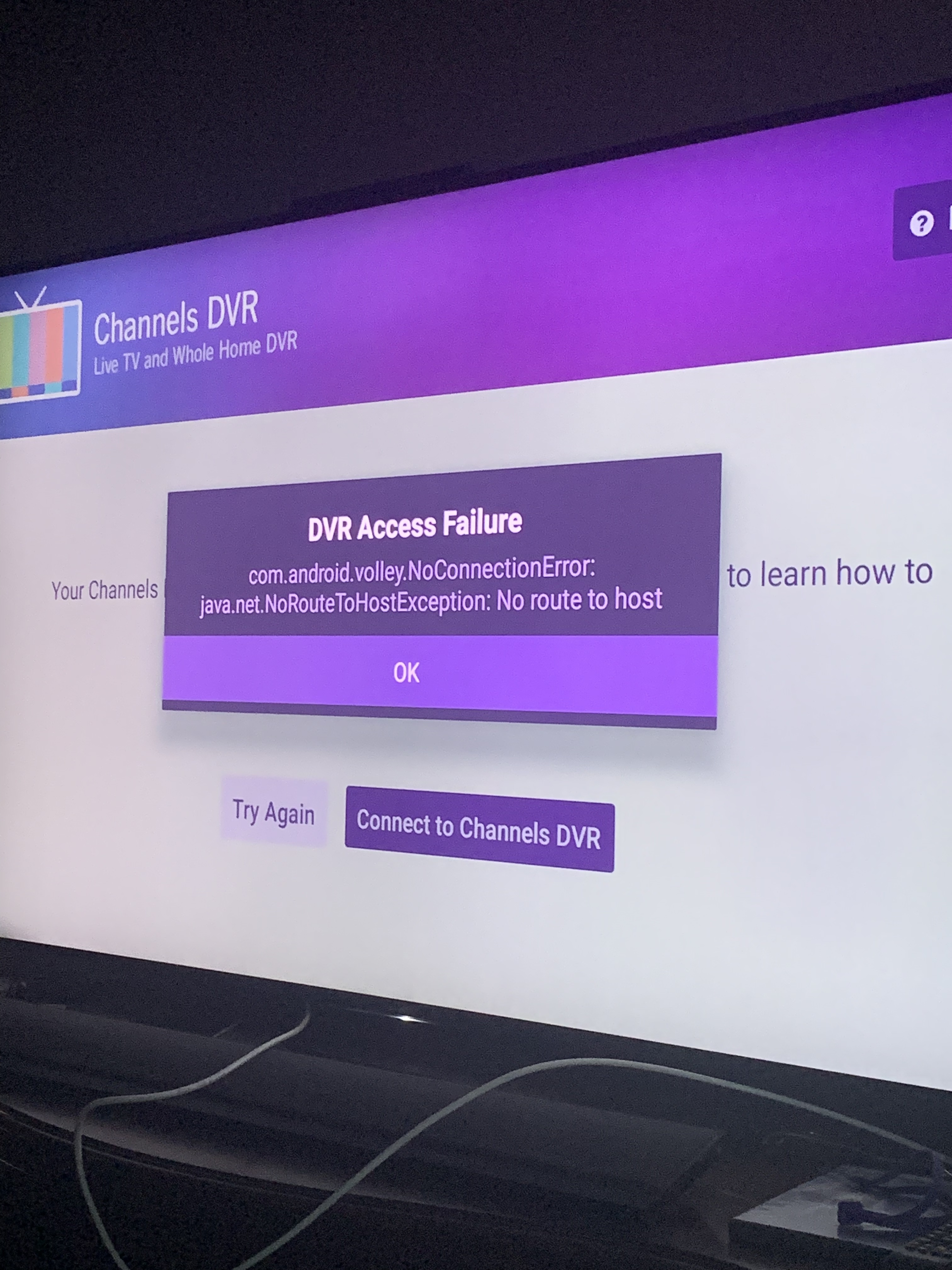Trying to connect a remote Android TV to my DVR. The webauth is successful, but when the TV tries to actually connect I get this error.