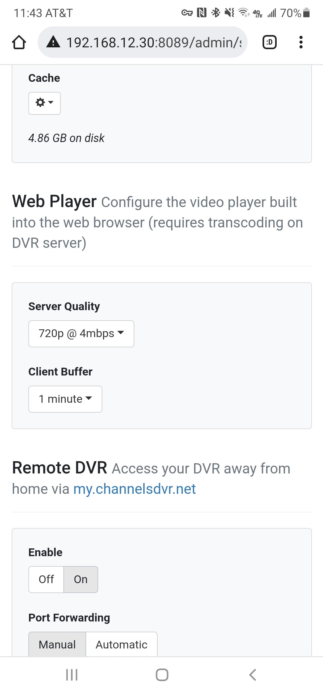 That deals with the first problem. The solution to the second is not as nice as the Android Channels DVR app which has separate settings for the situation at hand.