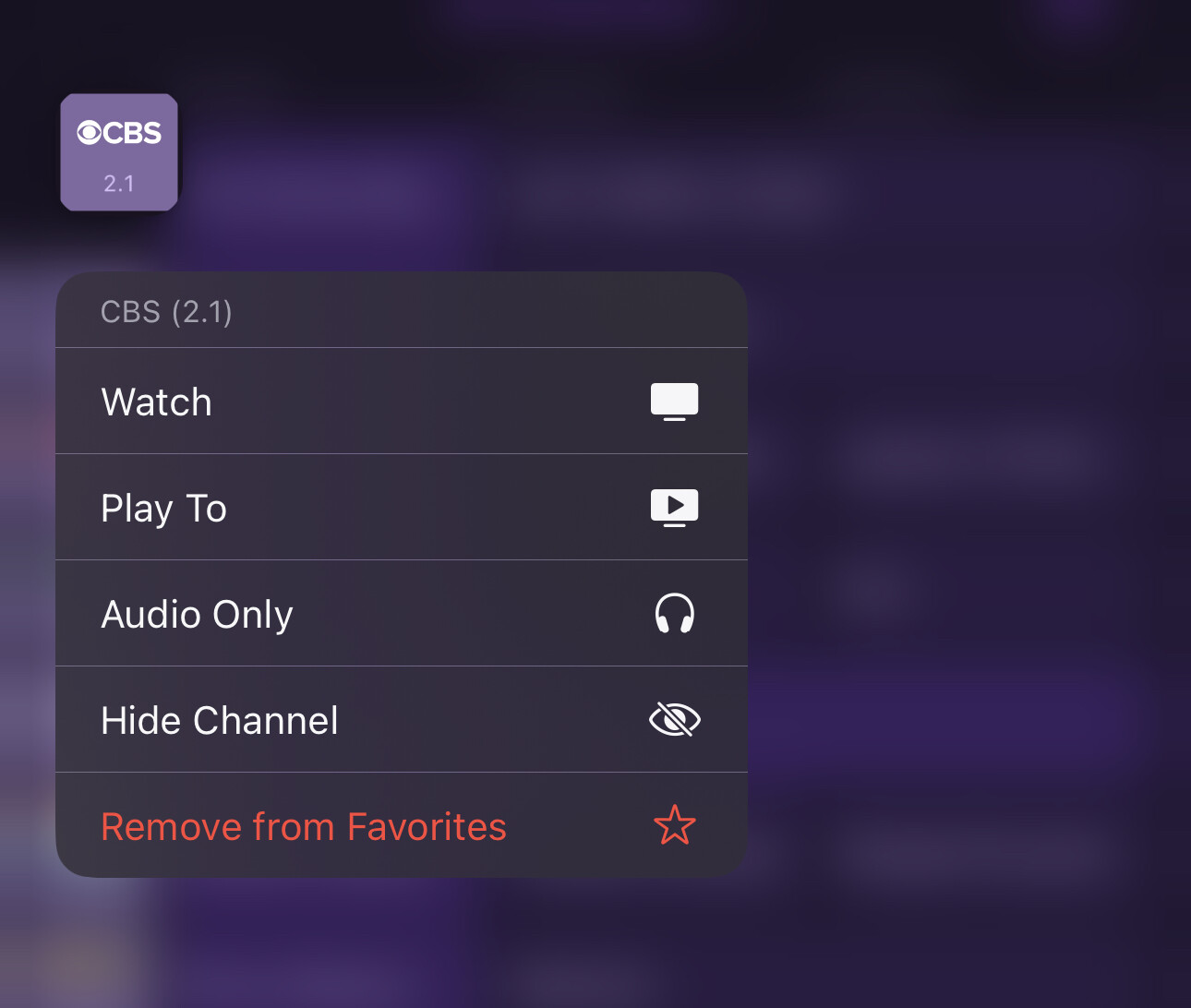 On iOS you simply press and hold on the show or channel logo