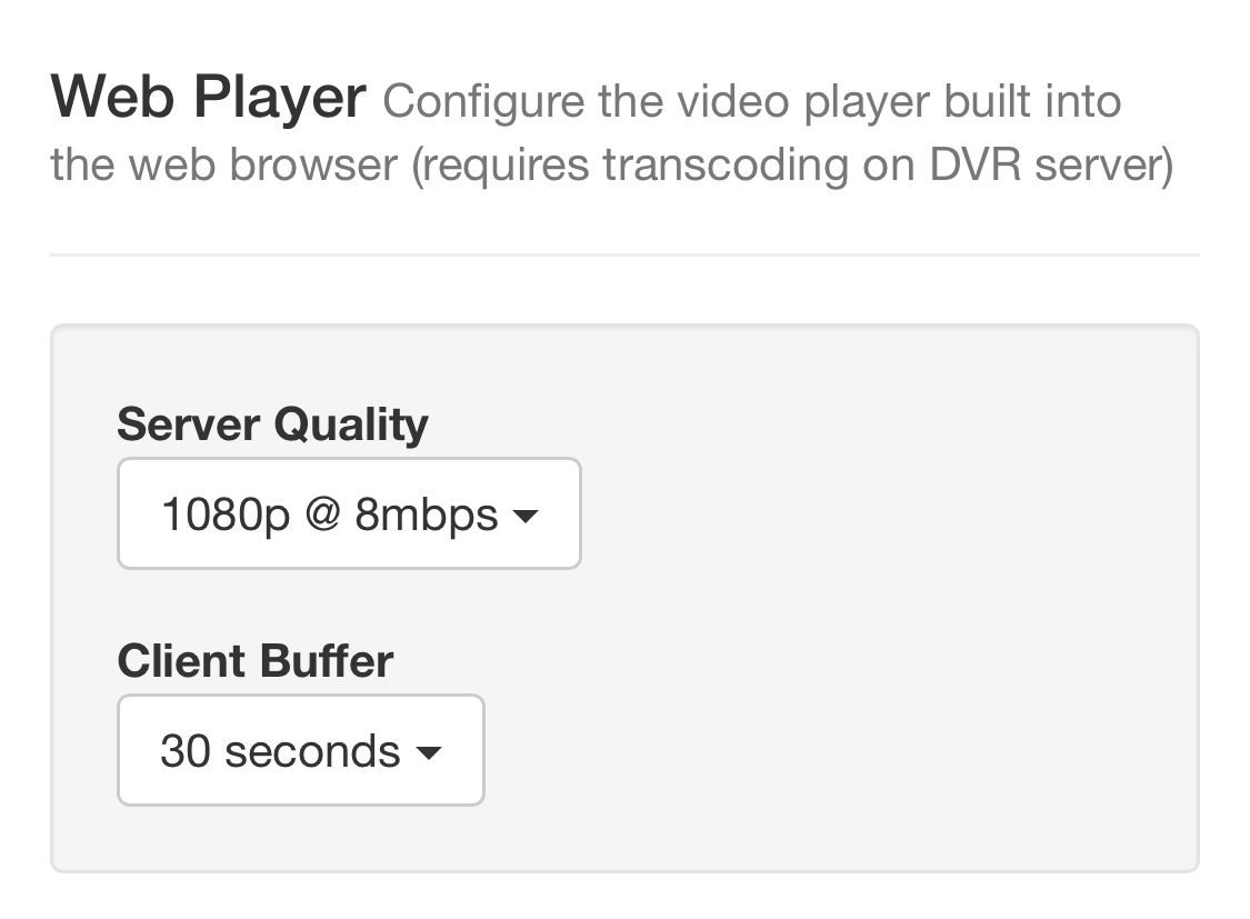 I often watch live or recordings through the server web page. I can definitely hear low-bitrate, overly compressed audio through my speakers. Is there a chance we could have an option to toggle the bitrate to a higher quality mode there? I'm not talking lossless, just something like 256kbs AAC. Currently it sounds like 128 or worse. In comparison, when viewed through my Apple TV it sounds fine, so I assume it's being compressed for the web viewer.