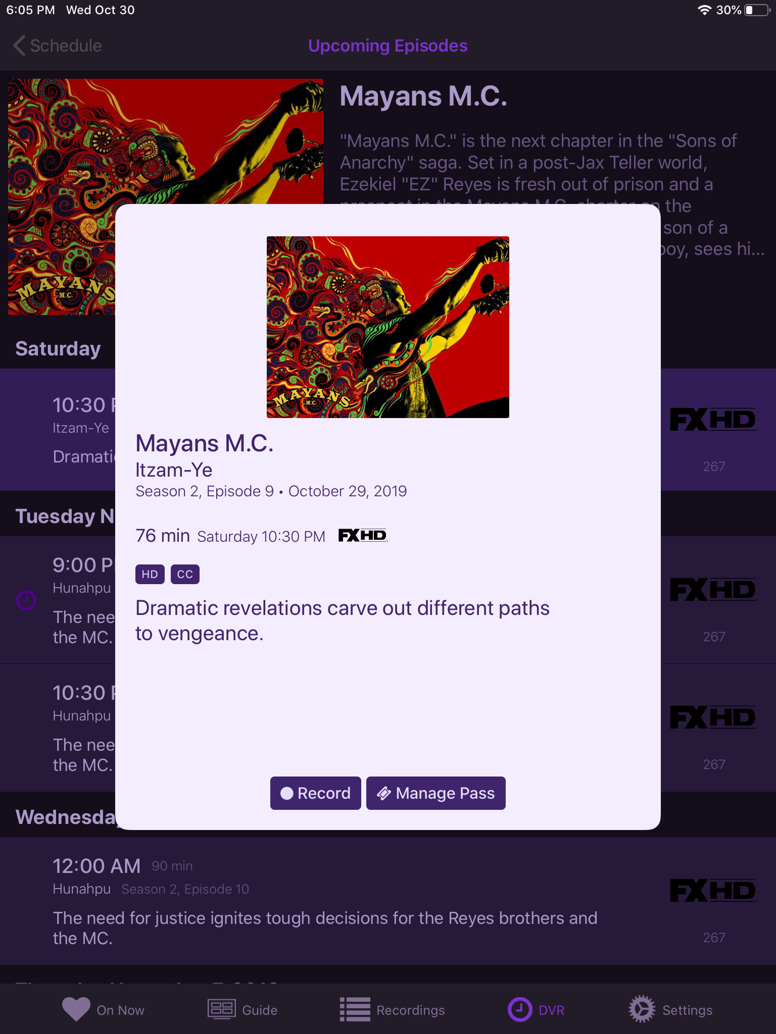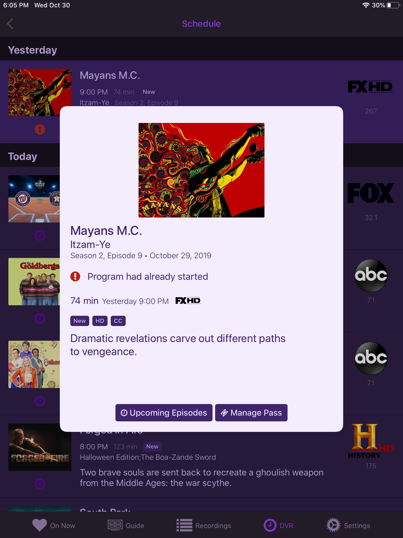 The master schedule still shows the recording with the error and does not reflect the one I want to record later.