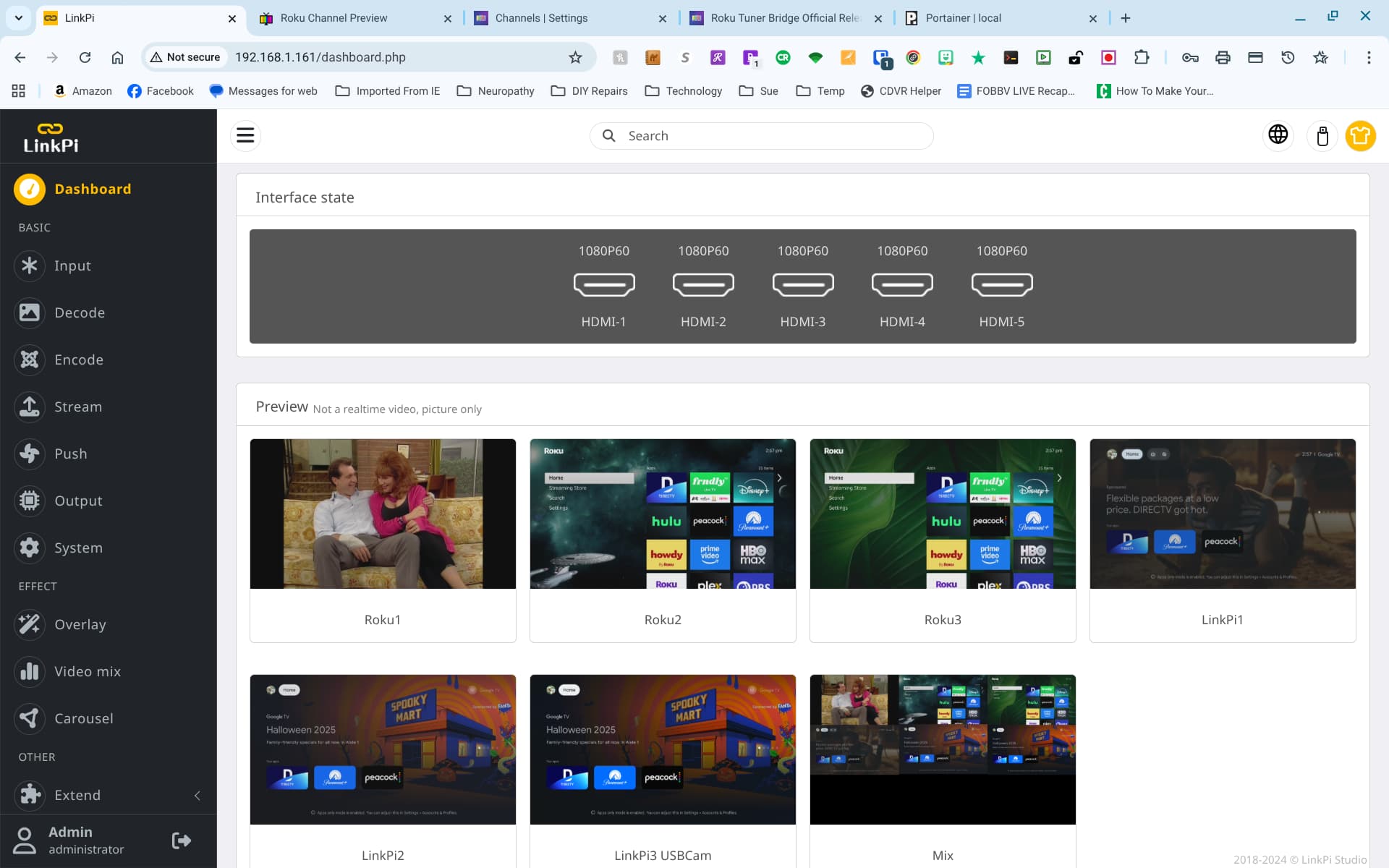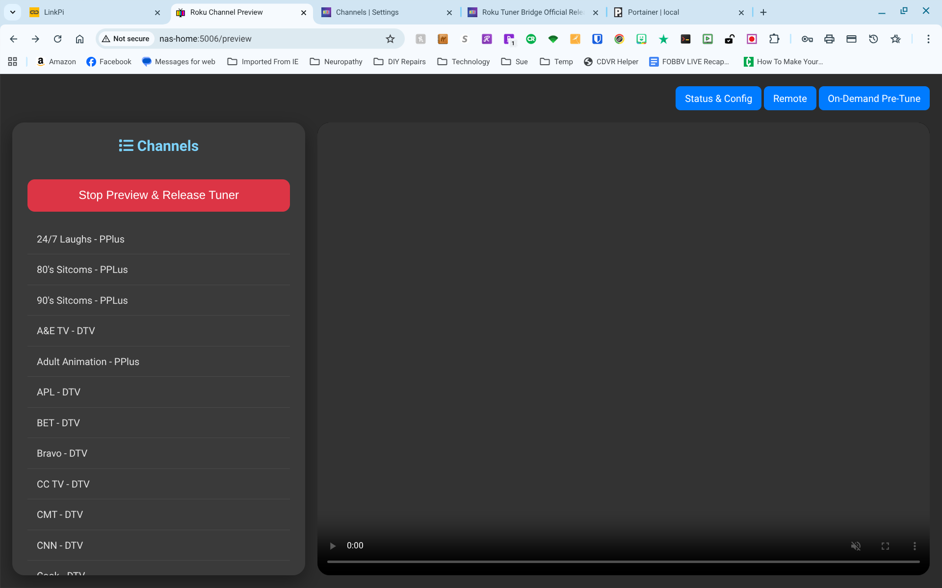 I keep the LinkPi GUI Dashboard open when I'm testing things. On that browser tab I can watch the output of each tuner. After pressing the Roku Bridge Stop/Release button, the channel preview continues to play.