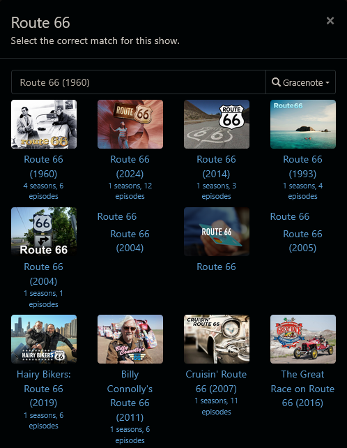 In general I get metadata fine for all the other shows and movies. Am I out of luck, the meta database doesn't have Route 66?
