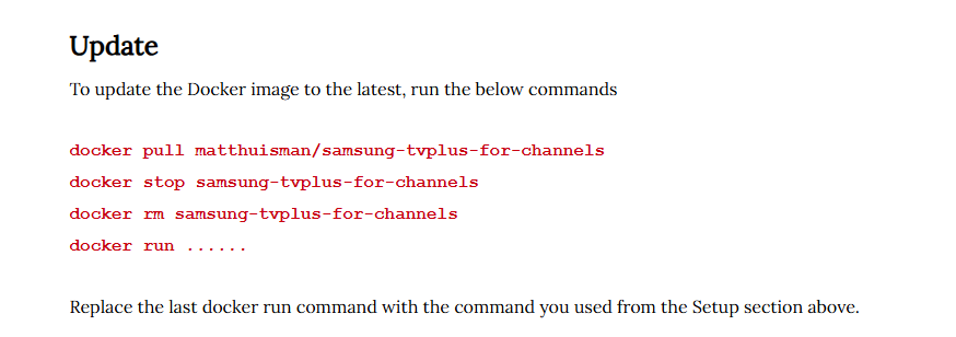 Updating the SAMSUNG tv plus docker was a little bit challenging.