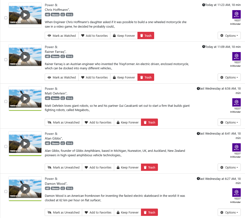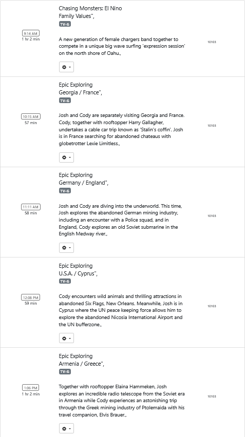 Seeing what looks like maybe part of json data in episode titles and descriptions on recordings from this channel. Not sure if it came from Samsung, or if it wasn't filtered out by the container.