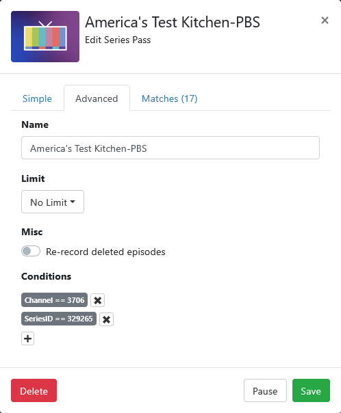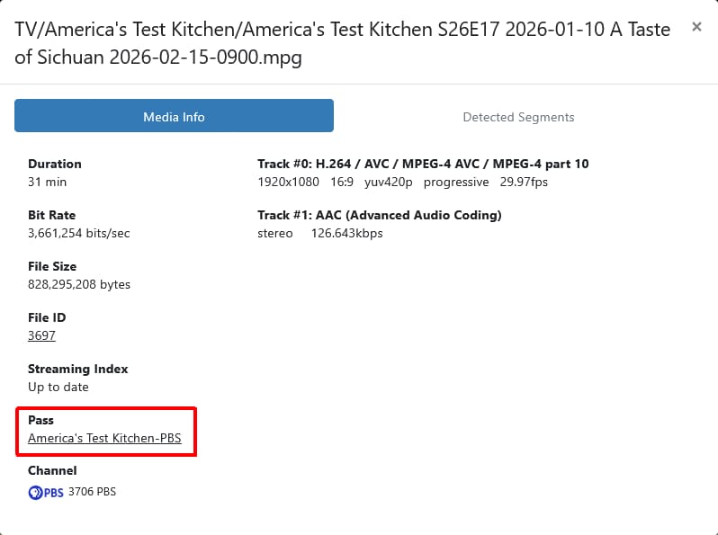 Specifically, my original pass was set to record from channel 9.1, but it kept changing mysteriously to channel 9.2 – where the program never airs. So I deleted that pass and created a new one recording the same program from 22.1. This worked for a day or two, but then it mysteriously changed back to 9.2 – no idea why.
