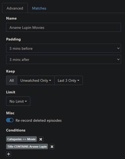 Here's an example of one I did for recording movies that may show up from time-to-time. Worked in recording a couple of movies when they became available:
