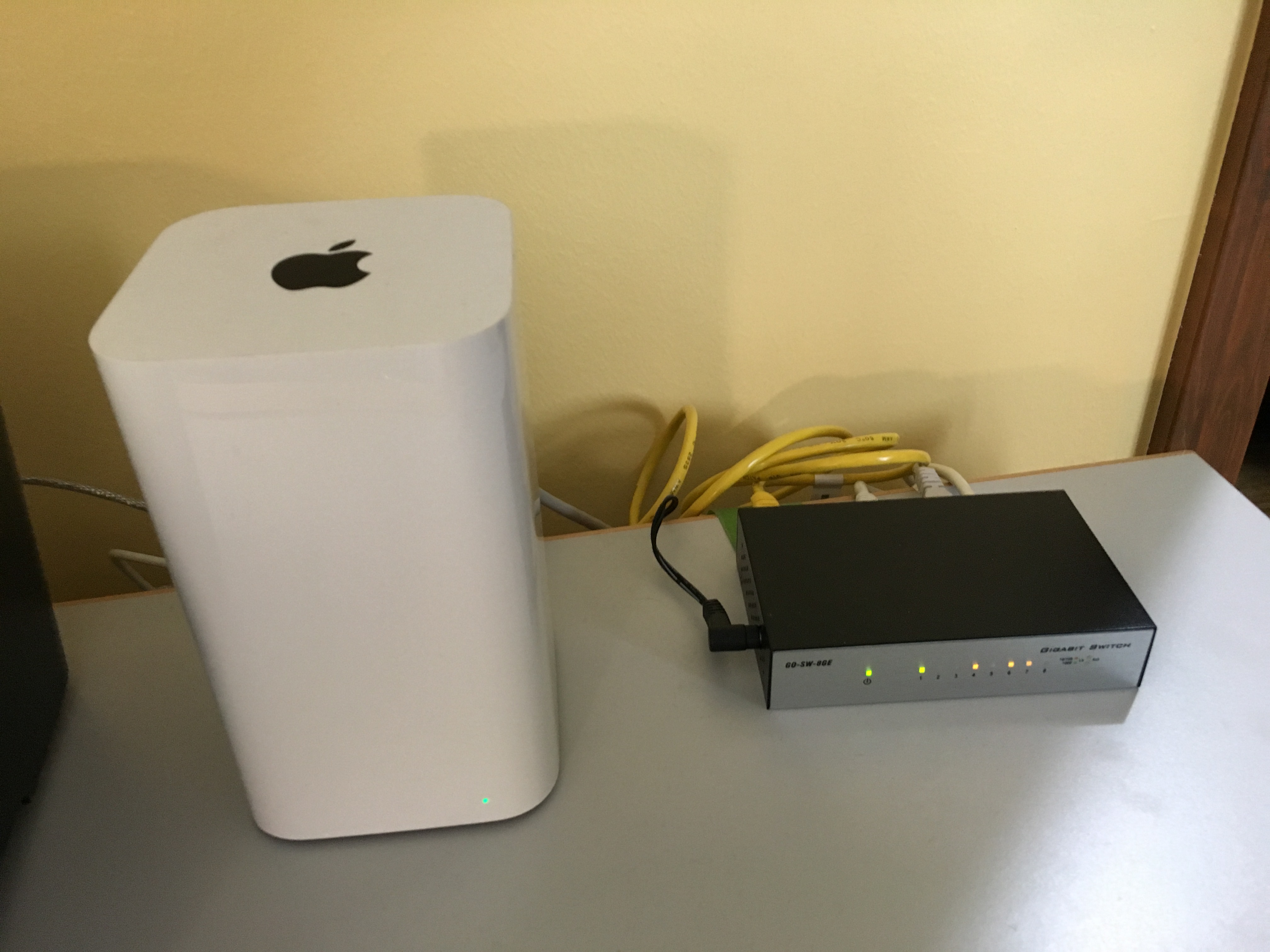 Yes, it’s a lot of cables with six antennas, an amplifier for each antenna, three Dual tuner HD HomeRuns and an ethernet cable for each HomeRun, but it’s mostly hidden behind a rolling file cabinet.