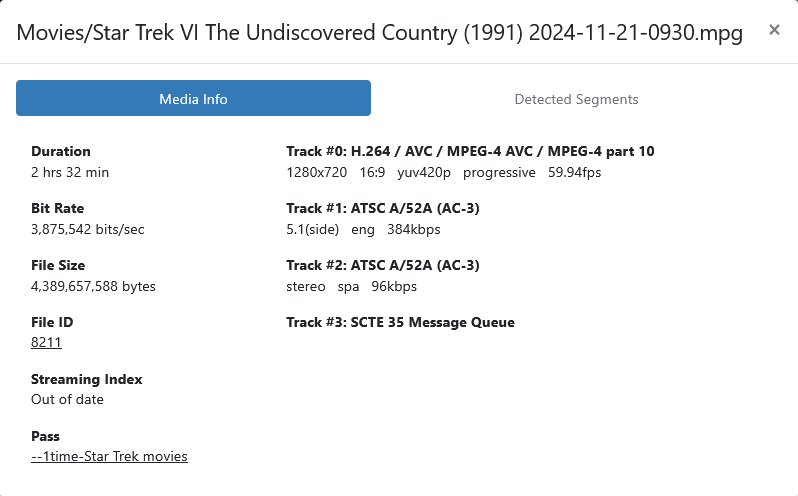 2025/11/17 04:03:00.440071 [SNR] Signal statistics for "Movies/Night Watch (1995) 2025-11-17-0157.mpg": ss=100% snq=99%,80%-100% seq=100% bps=68900,22560-76704 pps=33,9-41