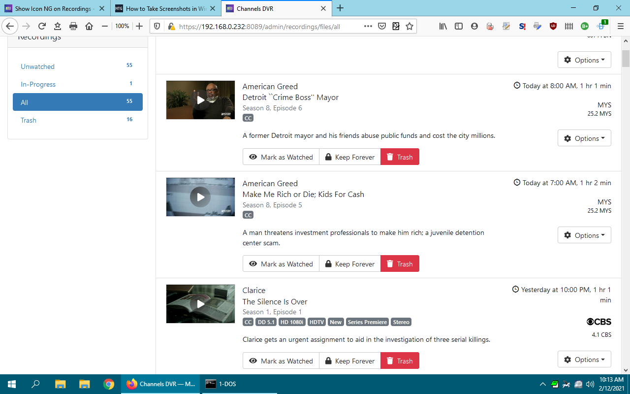 When viewing DVR -> All Recordings -> Recordings -> All,