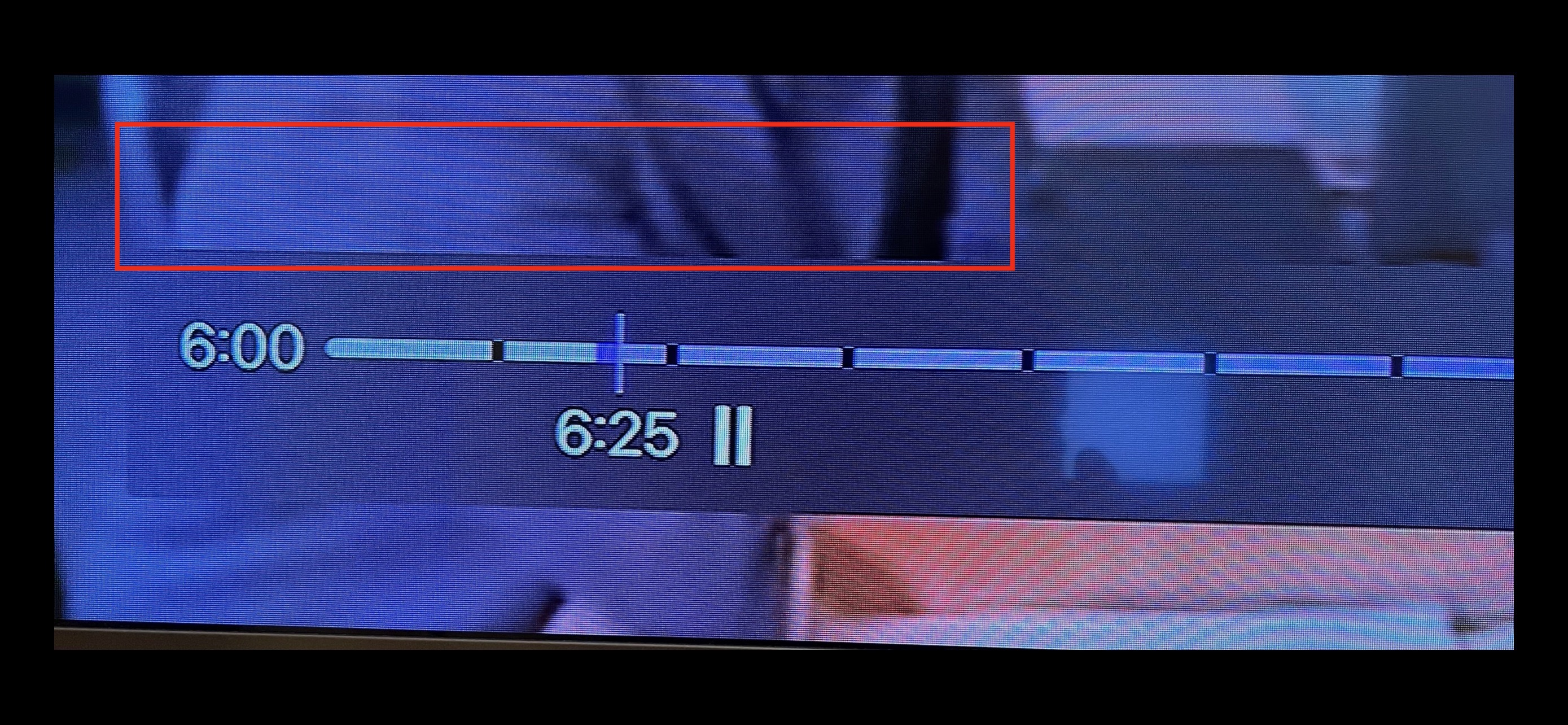 After pausing and resuming a show on Apple TV, the current show's title and description no longer display on the pause screen above the time/pause position. See attached image.