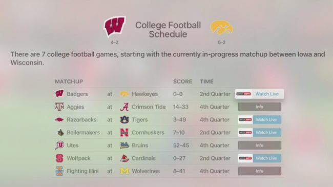 I'm not sure how difficult this would be or if it's even possible but I'd like to be able to have Siri search for Live Sports available within the Channels app. Siri Live Tune In has been available for certain apps for some time now but it will now be available for specific live sports. Simply ask Siri what college football games are on today and she will bring up a list of games and the apps available to stream the game. Channels would be a great addition to this feature.