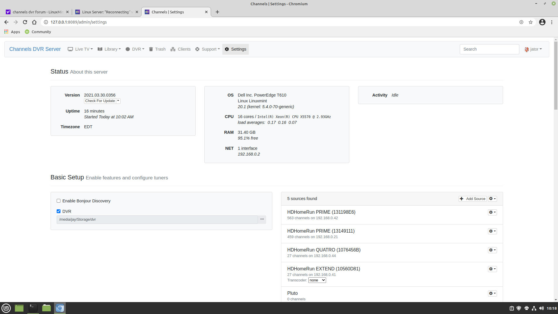 OK, more on this front. This is a box I've setup for testing before migrating from Windows 10 (our main PC). I had the same problem when trying to view a recorded show, the recording showed under "What's Next" and I clicked play, but that's when the "reconnecting" started again using the Web player. I checked the logs and it said "no such file or directory" from when I tried to play.
