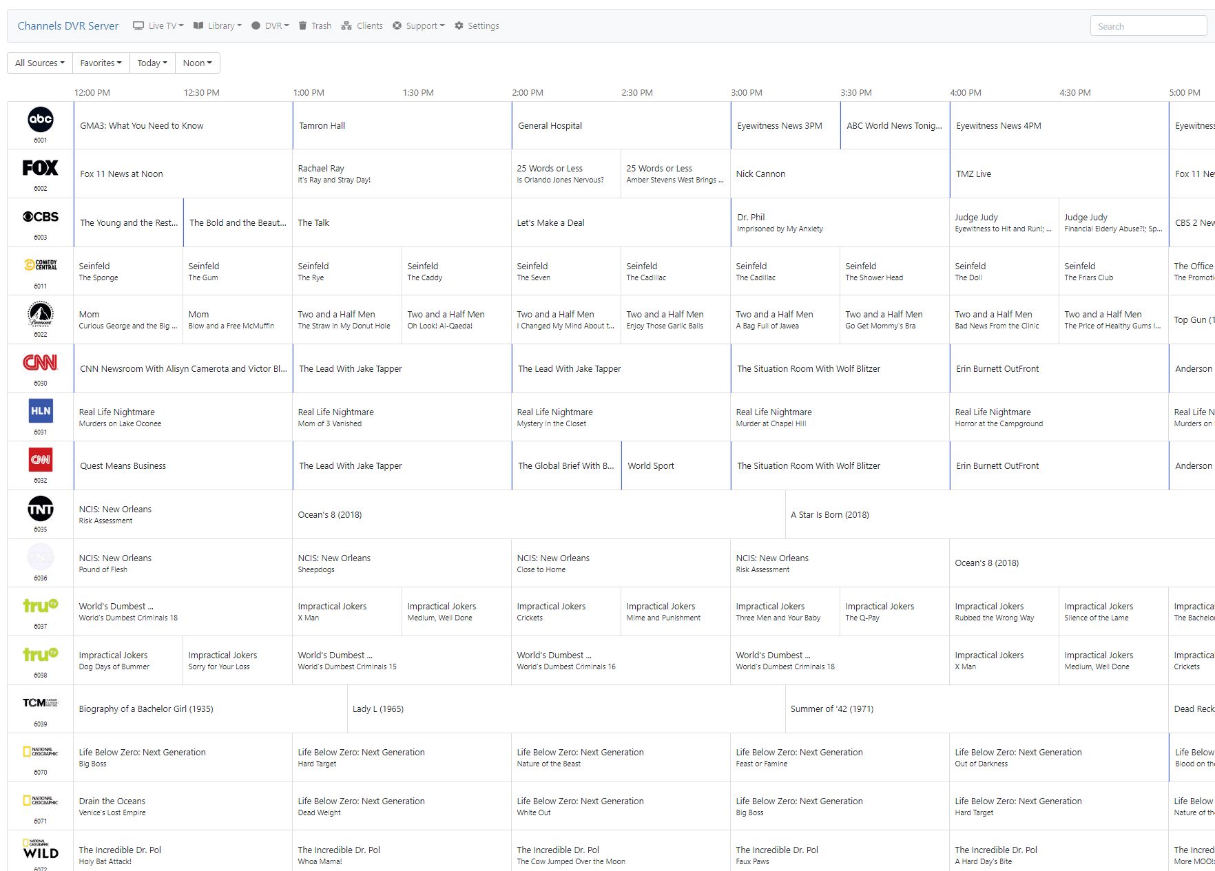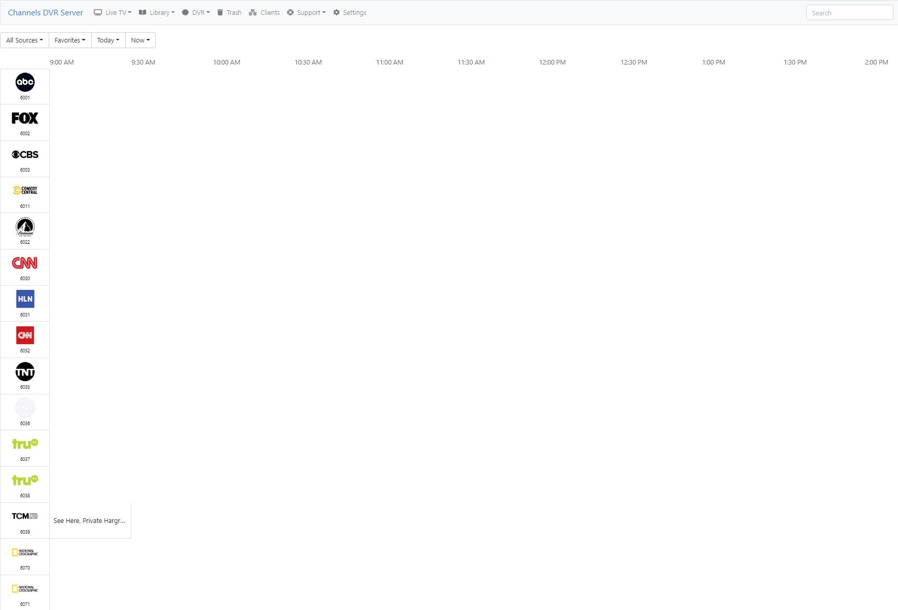 For the last several days I'm only seeing about a half dozen channels showing what's on when I go to Live TV->Guide (mostly locals and the FX stations, and AMC). Even in those it is only showing what's on for the next hour, despite providing a two-hour lookahead window as that part is blank on every channel. If I go to, say 9am, which is 40 minutes from now, I get a full guide with all channels having data for the entire window. Same for noon, 3pm, etc.