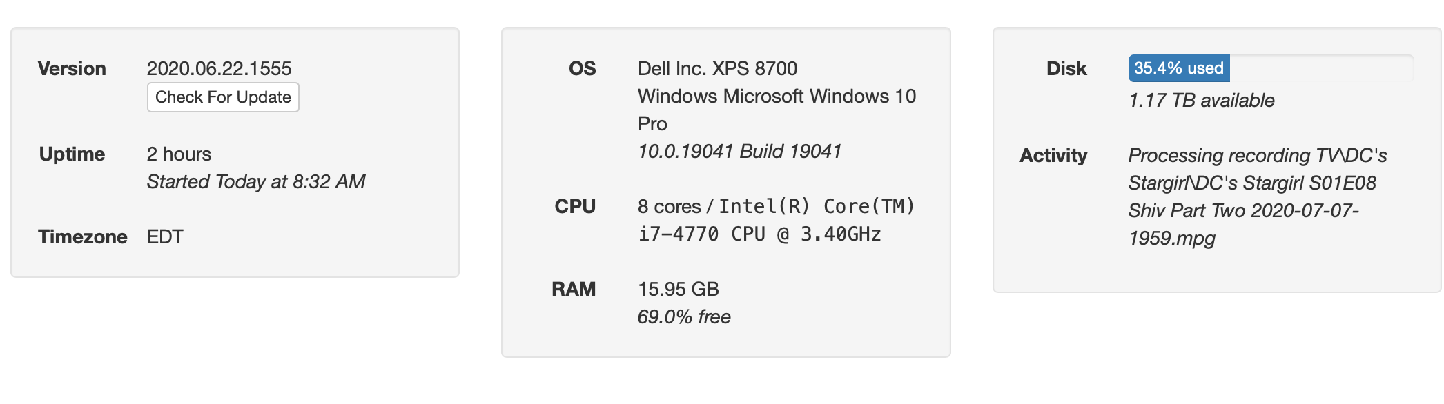 The last couple days the DVR has been getting stuck with processing recording... as the status. Never goes back to idle. When in this status it doesn't seem to run comskip on subsequent recordings. If I stop the dvr and restart it the dvr picks up the processing of new files and other housekeeping. Any idea why this would be happening? Screenshot attached. Thanks