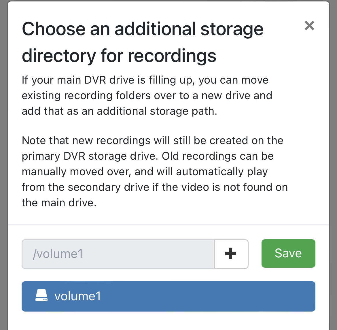 You just need the folder structure wherever you are pointing the DVR with everything in them except for the recordings. The recordings can live on another storage path. The key here is the DVR will always record to the primary storage path. So if you move off your recordings to the secondary storage path that frees up room for the primary.