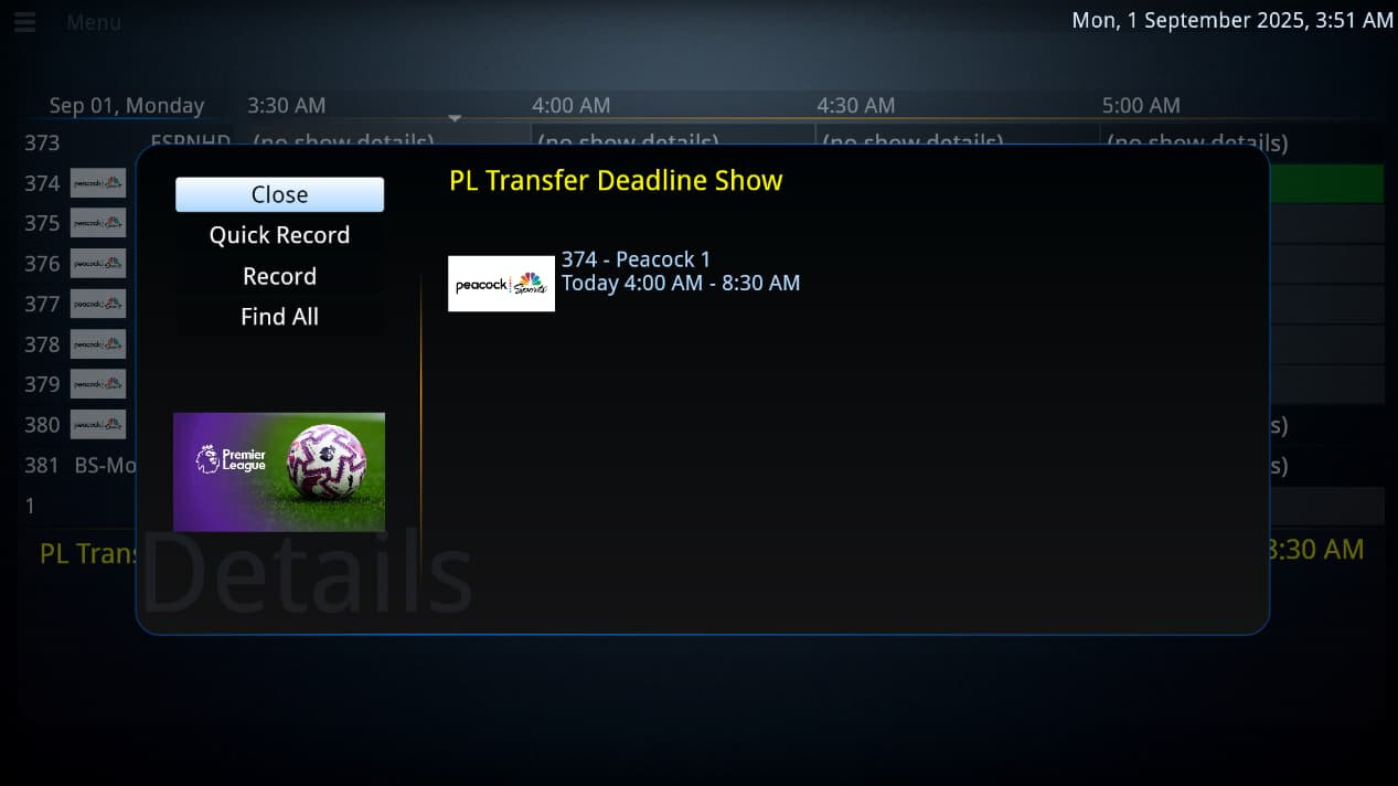 My script to run peacock works with place holder, boise - it will play the boise oregon game from weeks ago, to do live it needs to pull from the xmltv file. Once the guide data works it will load once I figure out how to implement that current guide show info into chrome capture. However first thing is first, a working guide for Peacock.