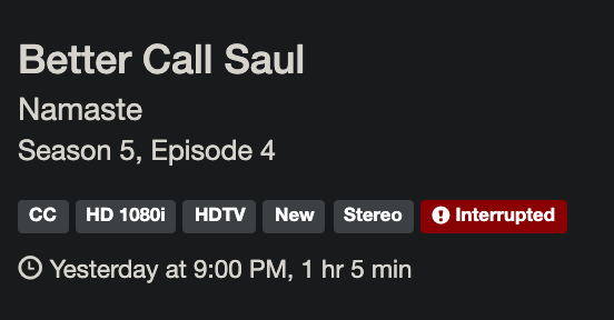 I would like to suggest that the DVR automatically re-record an episode if it was interrupted, of course if a re-run is available. Thanks!