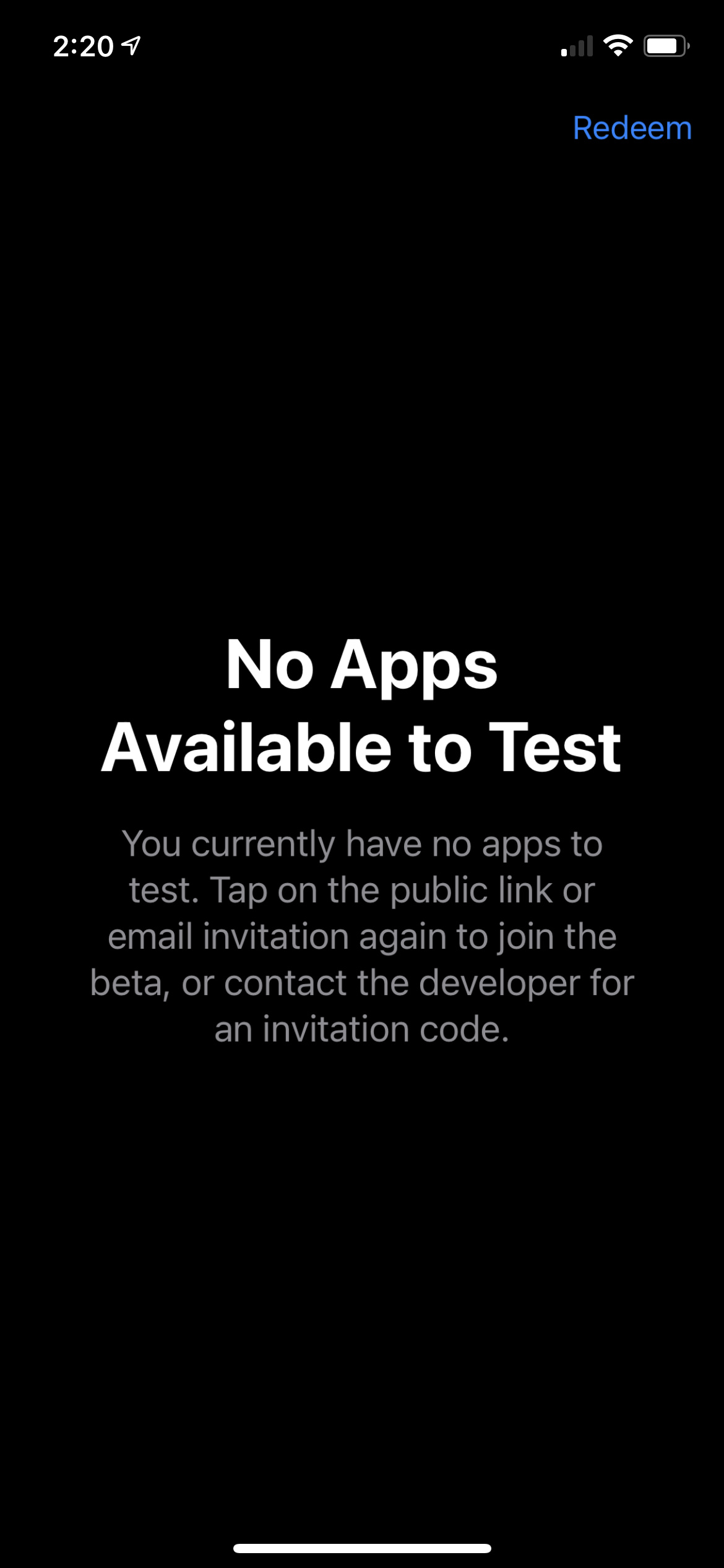 I have testflight on my iPhone but it just says No Apps Available to Test. Is there a redeem code?