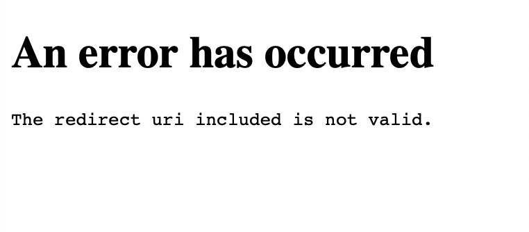 But when I click the button to "Set Up New DVR" and proceed to login, I only reach a white screen with an error "The redirect uri included is not valid."