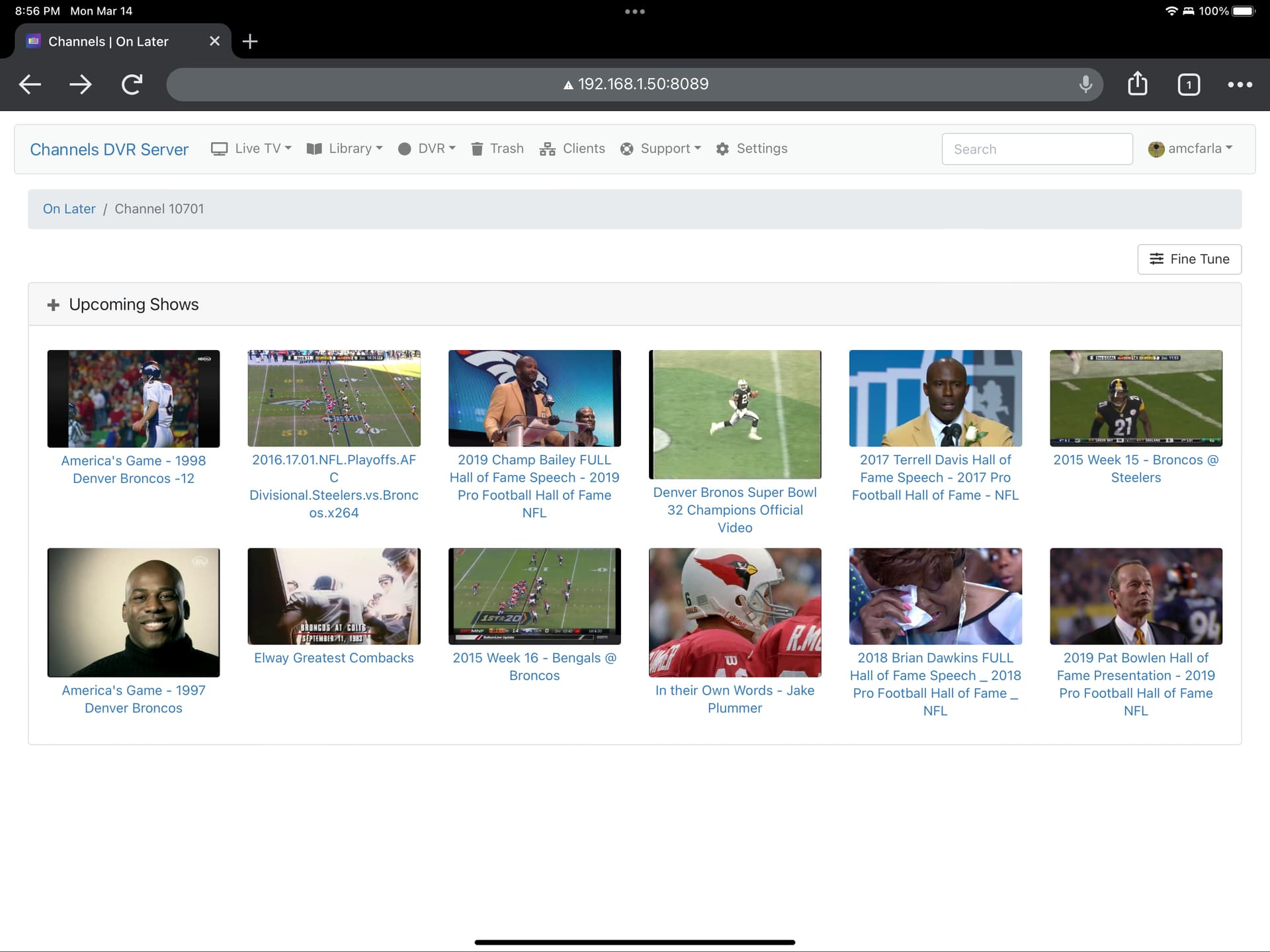 So I have custom channel setup using dizqueTV for Denver Broncos and Colorado Avalanche games but when I go to look at what's on later I am not getting any thumbnails on my iOS device for some reason on some channels. This is what it is showing on the website for the Denver Broncos channel and the shows on later: