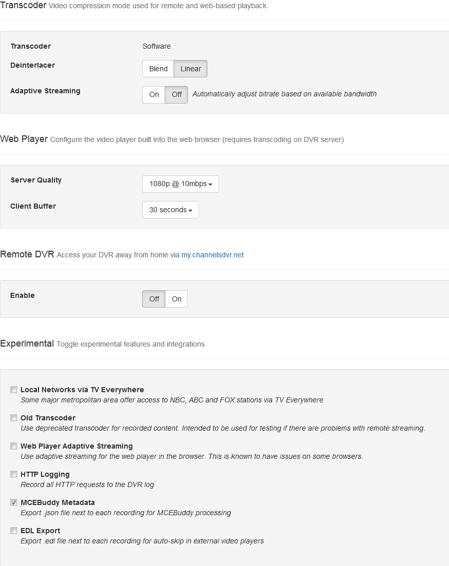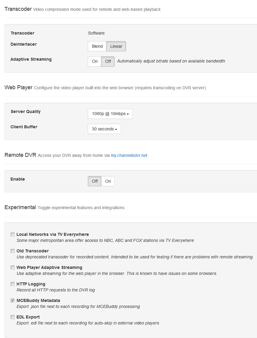 Playing a TVE stream Live locally to a web browser with setting Web Player Server Quality 1080p@10mbps