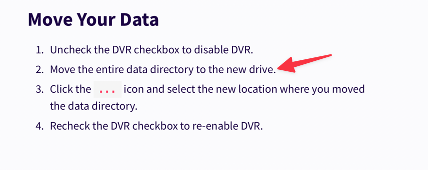 Have to admit it’s not intuitively-worded on the server interface that simply unchecking and specifying a different location would transfer over previously recorded files. Devs might want to consider adding a small note for new people next to it.