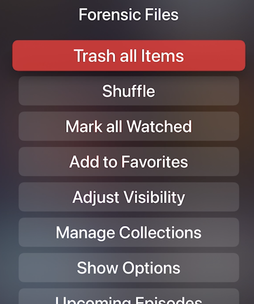 I was however able to delete the 1 episode of 227 this way, via "Trash all items." I haven't figured out the rhyme and reason, why some shows let me "Trash all" this way, and some don't.