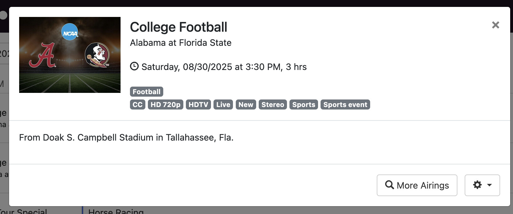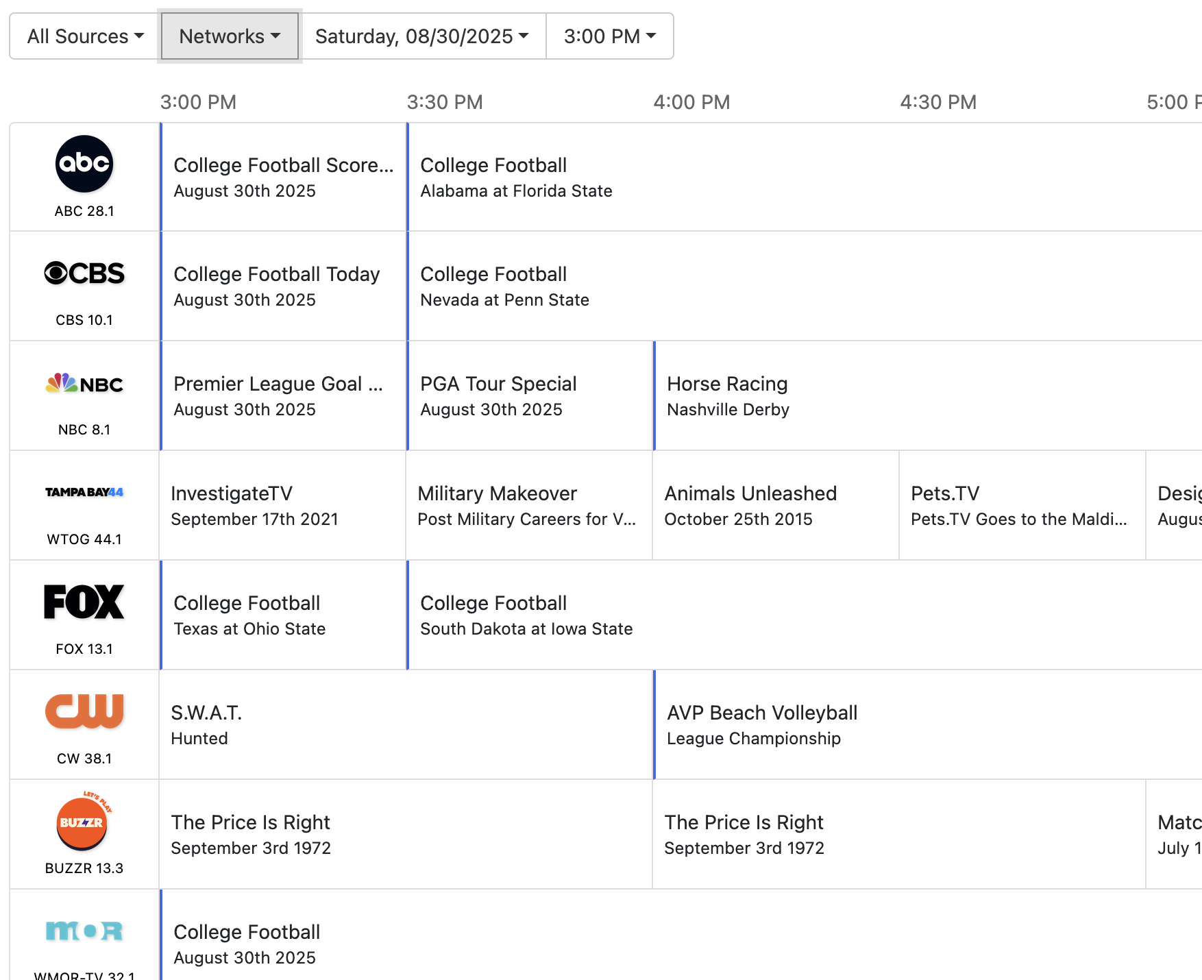 But if I change the guide to a collection showing broadcast networks, it shows more games: