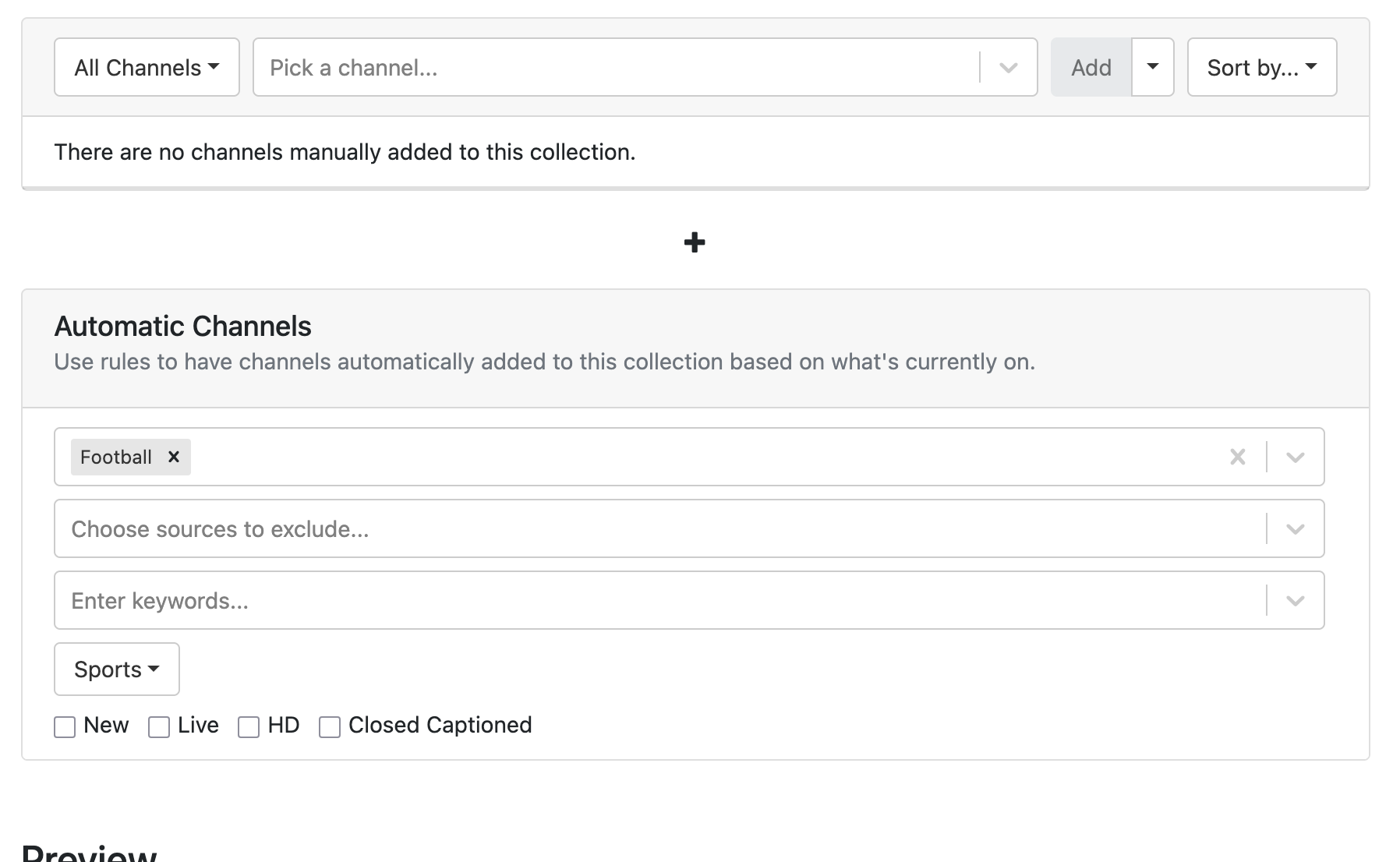So am I setting something wrong in the Channel Collection setup, or is there something with ChannelsDVR that is causing these additional games not to populate. I tried it with the Sports setting on Everything with the same results.