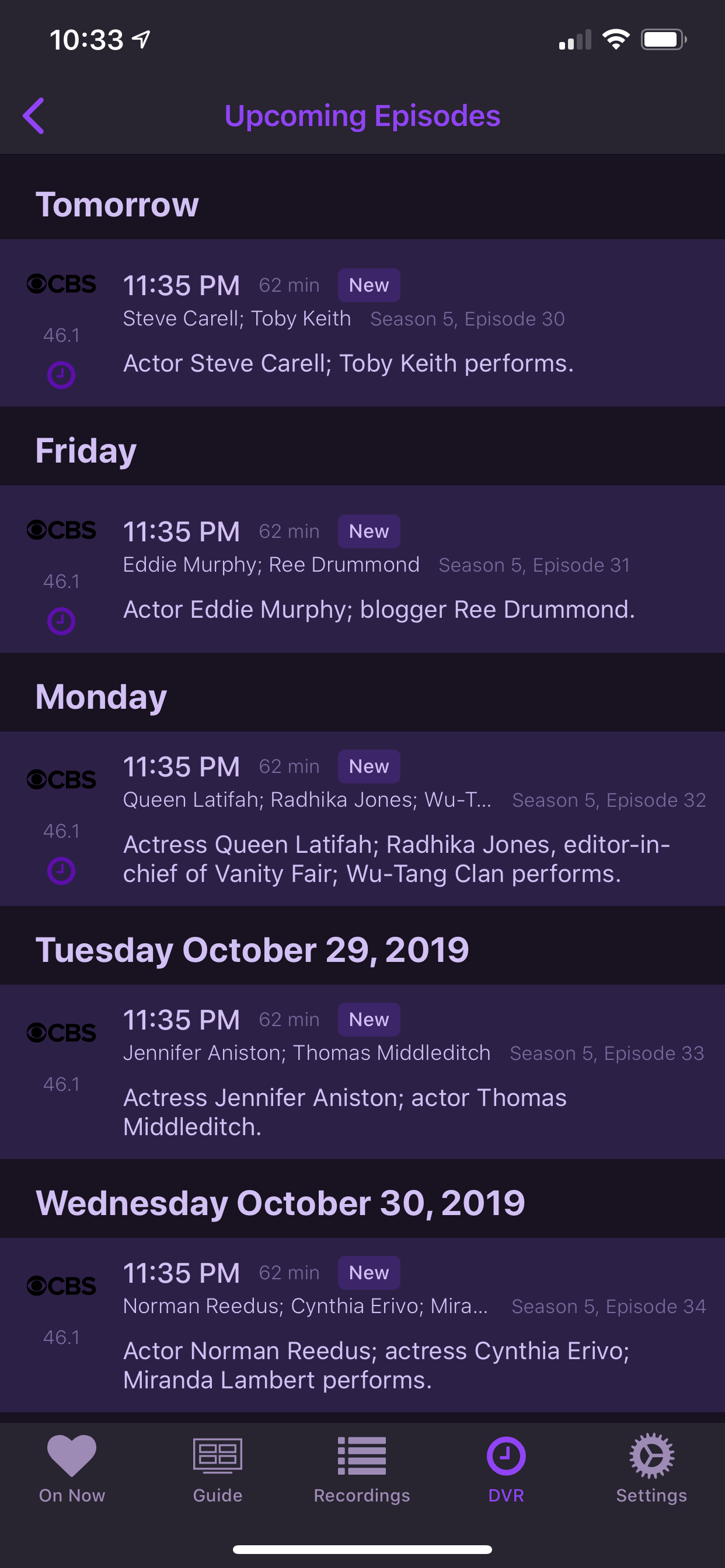 0 airings shown on the advanced pass makes it seem like the bug in earlier builds tonight.