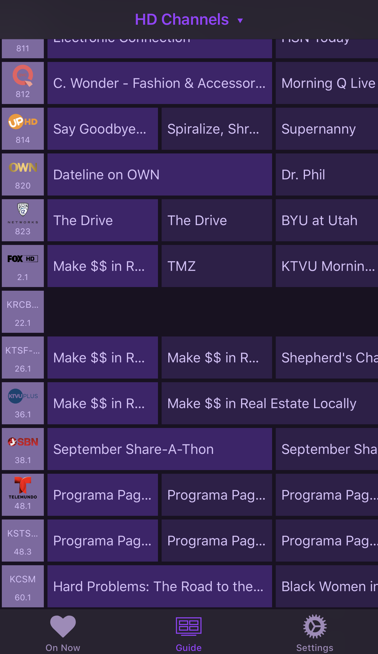 Channels available on both cable and OTA are automatically combined into one entry. The channel number and logo shown is from the HDHR with the highest priority.