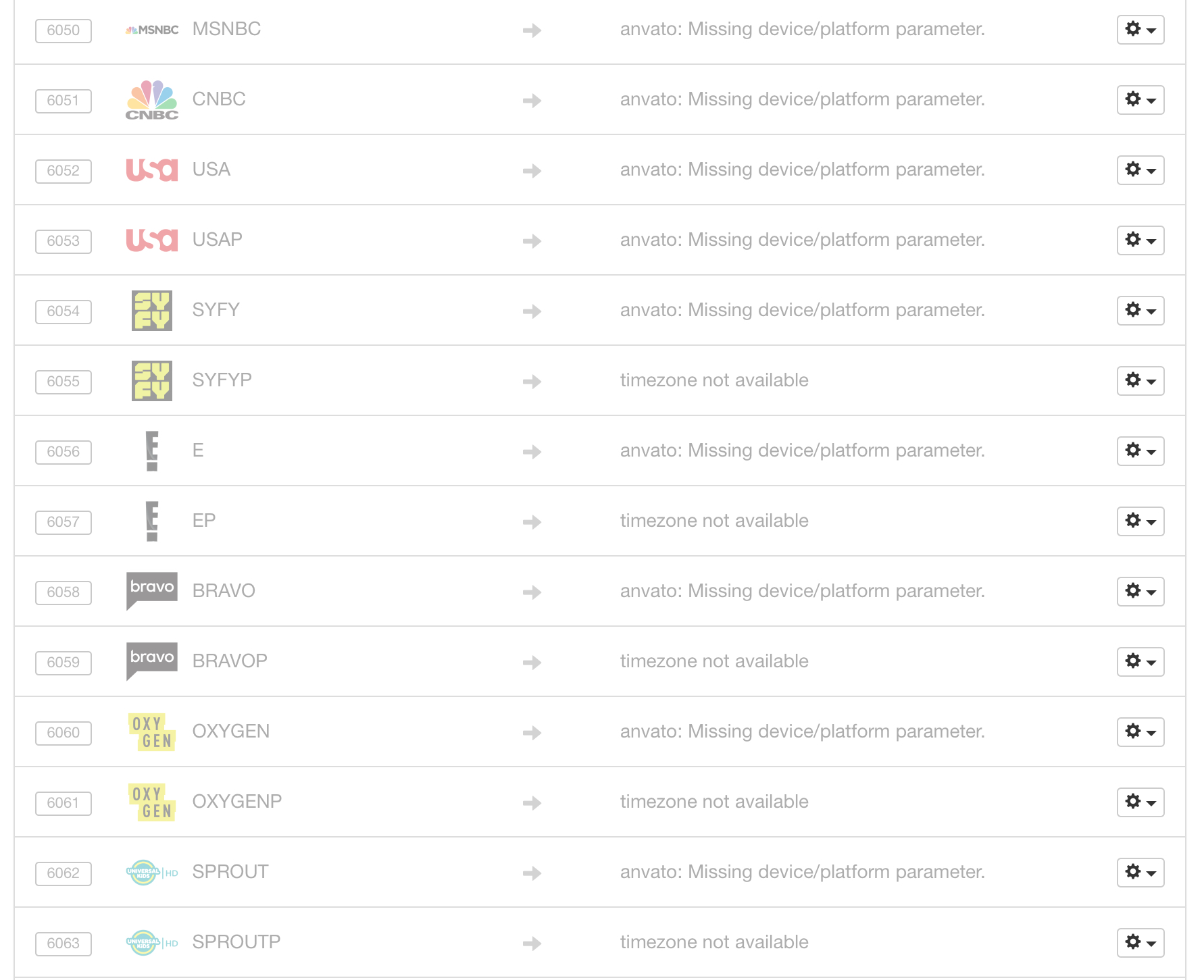 I’m getting this too, and this is probably an issue on Anvato’s side (the provider that all of these NBCU channels use). When I go to http://www.bravotv.com/live, the list of TV providers never loads and it is impossible to sign in and verify for the live stream.