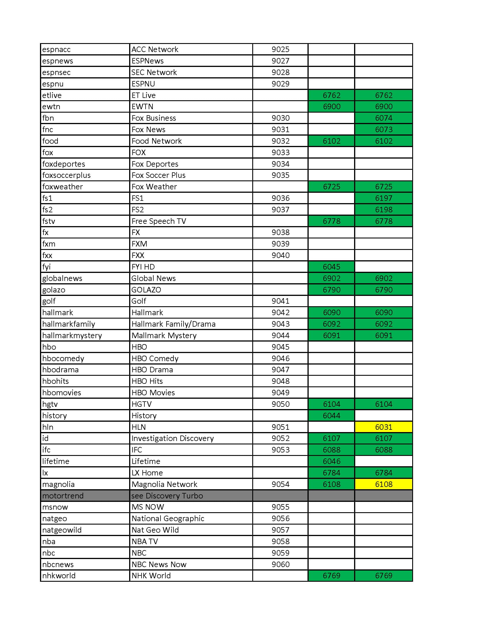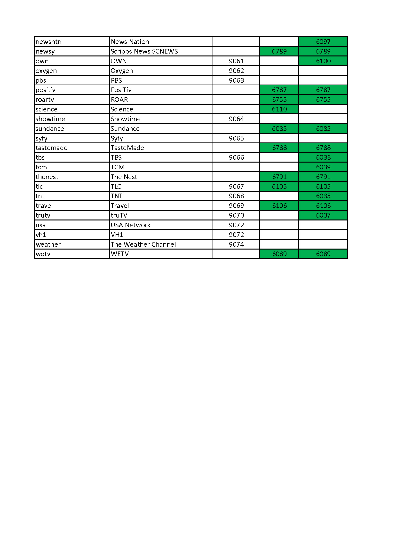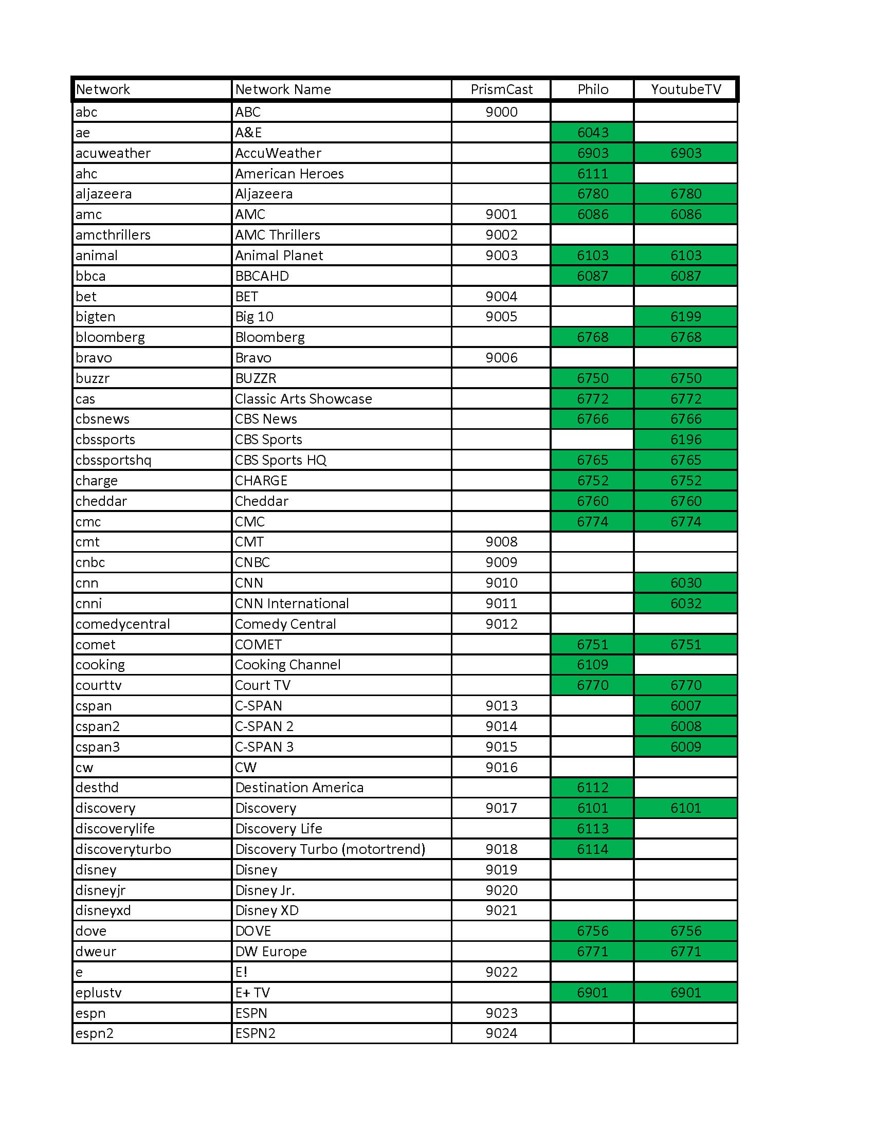 I have since been told that Magnolia is not available on TVE via YouTubeTV, so please disregard that yellow cell.