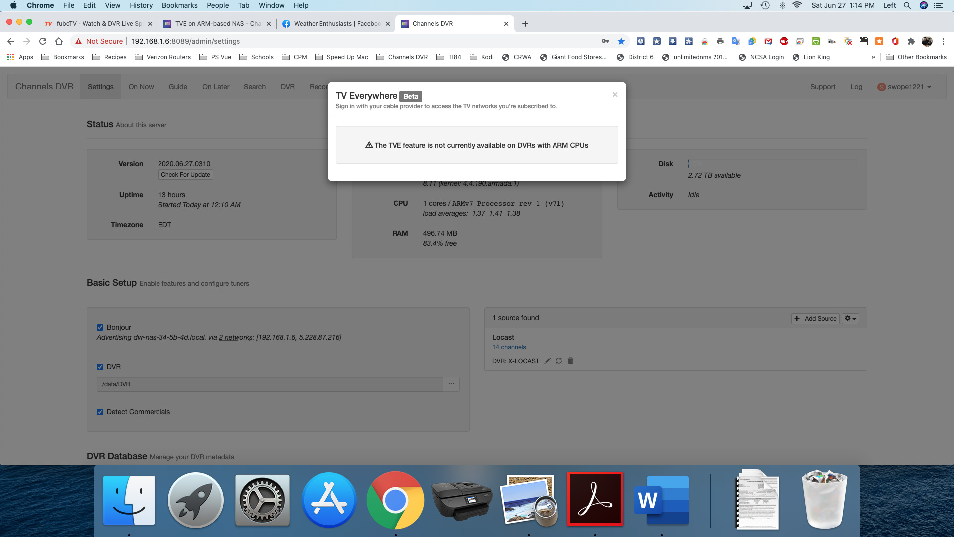 Hi @tmm1. I updated to version 2020.06.27.0310 today and now I get this error message on my Readynas. It went from an error message previously posted in this thread and shared in a pm with you to now back to saying TVE is not supported on NAS with ARM CPU.