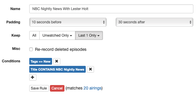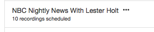 I have had my DVR scheduled to record NBC Nightly News With Lester Holt for quite some time. Tonight, it didn't record. I investigated, and found that tonight's episode has a new series ID. So now there are two separate series IDs for the same series. When I look at the schedule for the previous, there are no episodes until February 9. And in the meantime, the new series ID runs until that date.