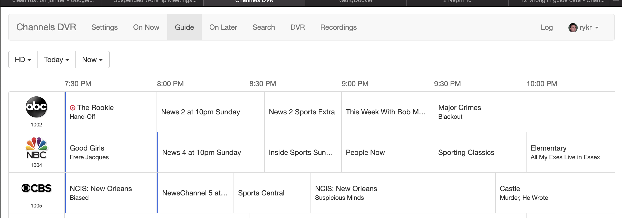 In the web guide. You can see in the image that The Rookie is recording but it shows as 7:30 when it's now 9:30