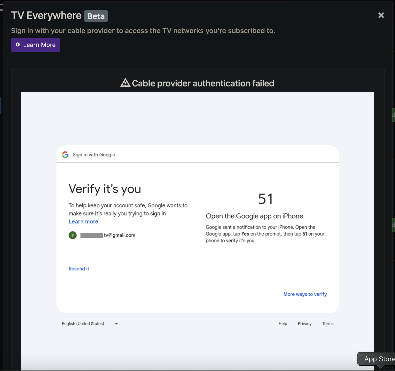 @maddox I found this: Two Step Verification on Google and YTTV TVE - #2 by rpaulmerrell