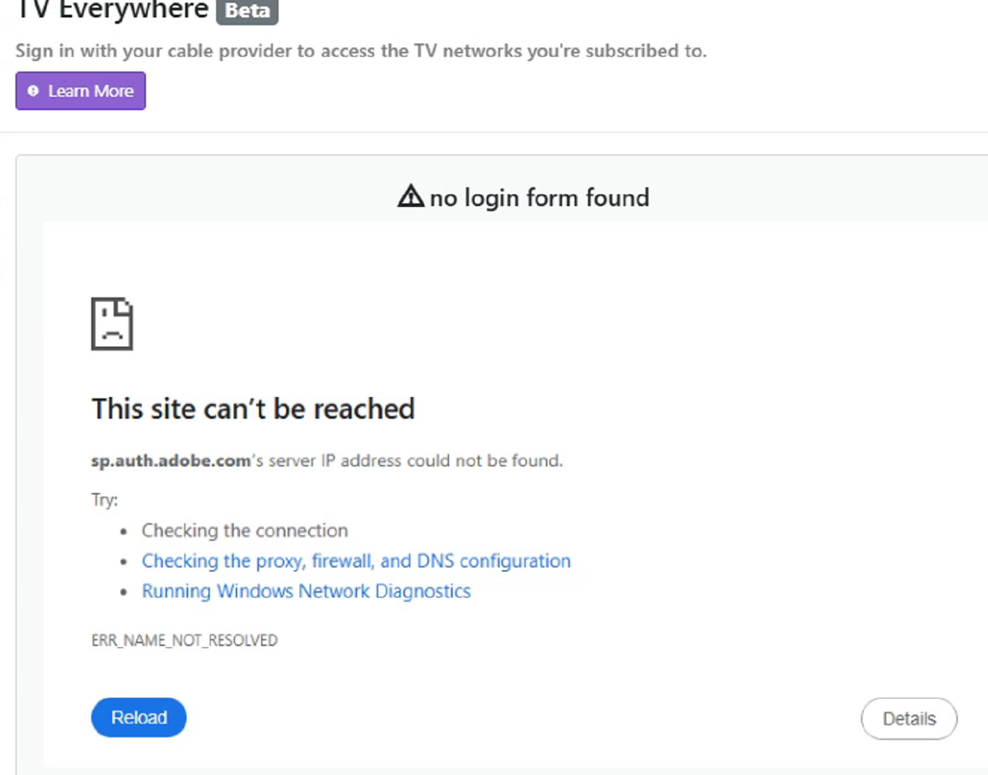 Odd, since I was able to sign-in to Fox sports website with the same DNS settings.