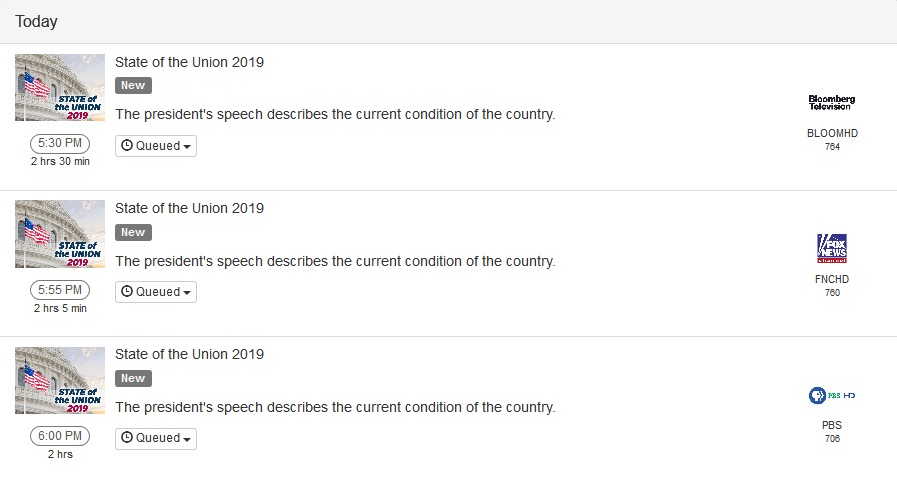So the bottom line is I am unable to set up a second recording of the State of the Union show.